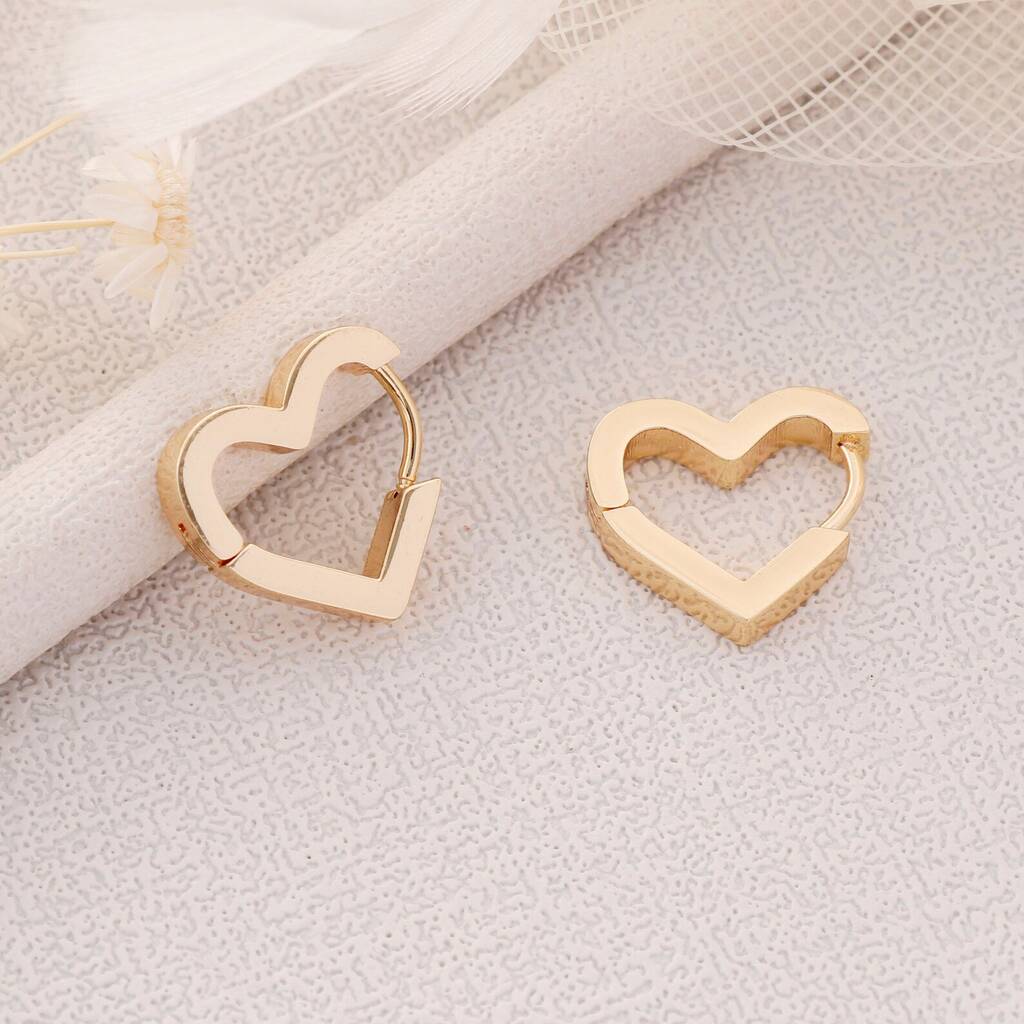 Our Harriet Gold Heart-Shaped Hoop Earrings are crafted from 18k gold plated for lasting wear.