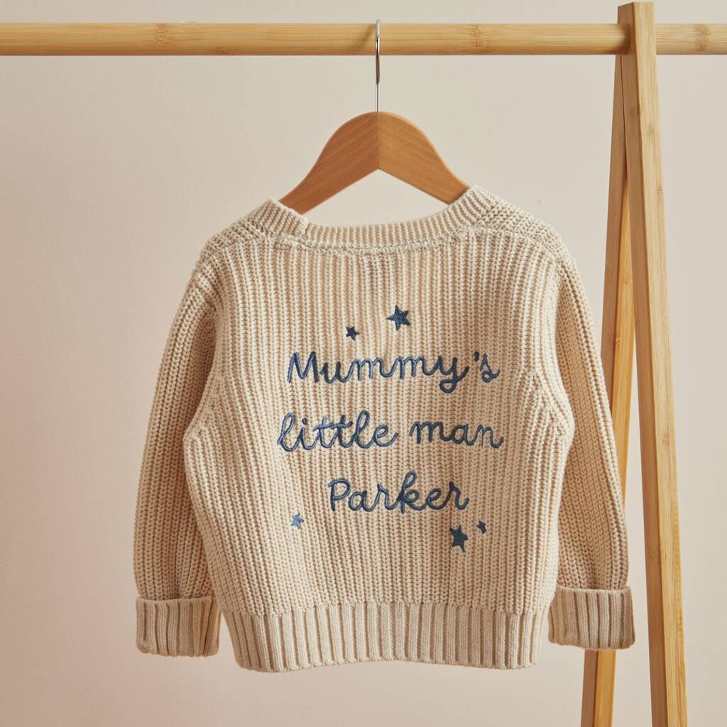 Personalised Mummy's Little Man Oatmeal Cardigan