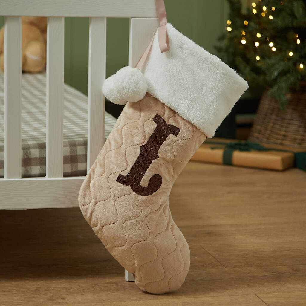 Personalised Oatmeal Velvet Initial Gift Stocking