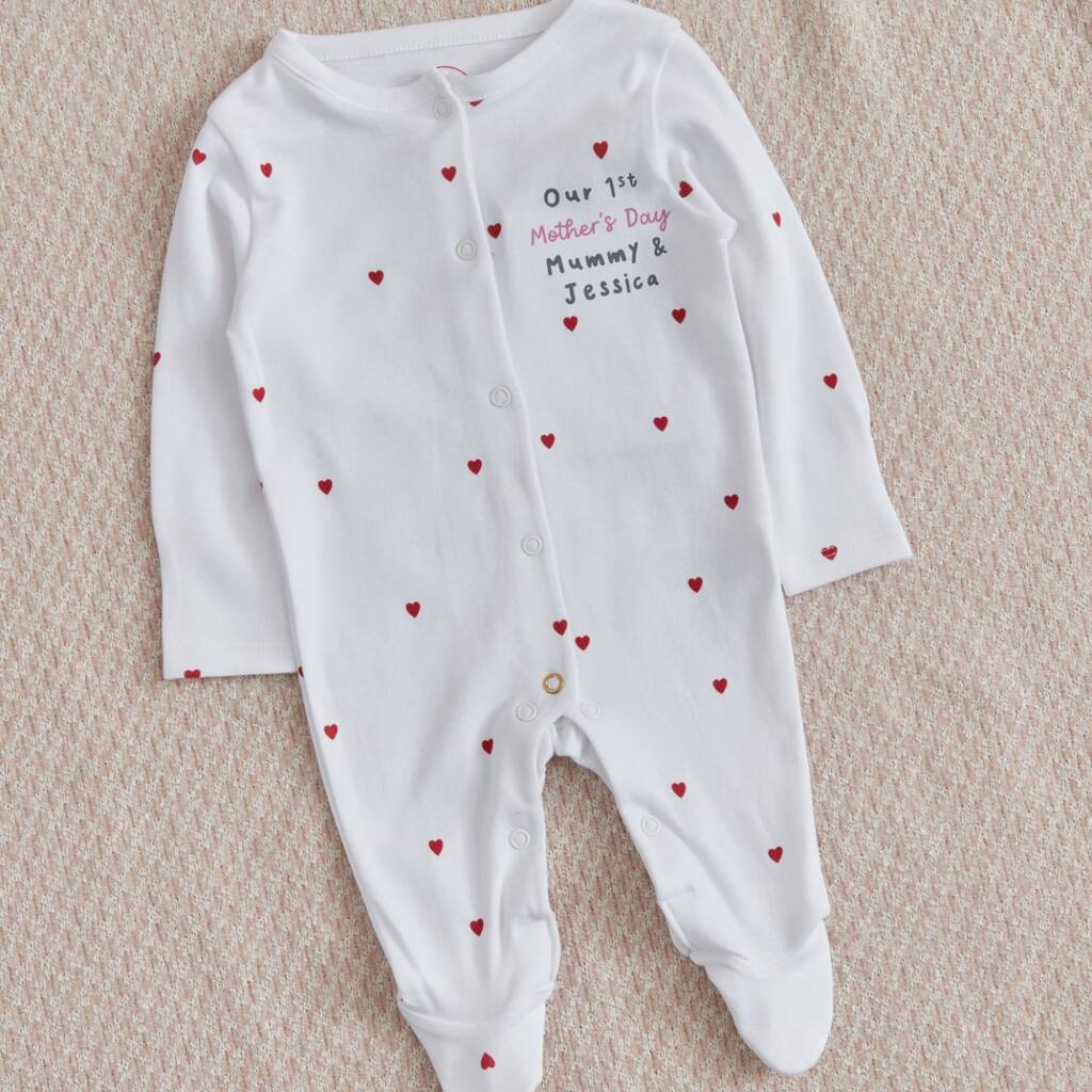 Personalised Our 1st Mother's Day Red Heart Sleepsuit