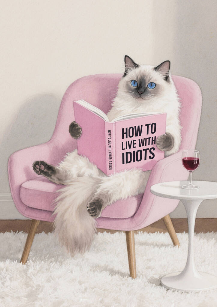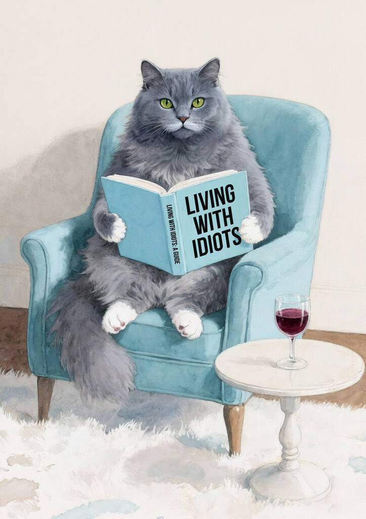 'Cat Reading Book' can be customised to your own cat. Choose breed of cat, colours and even book title if you wish.