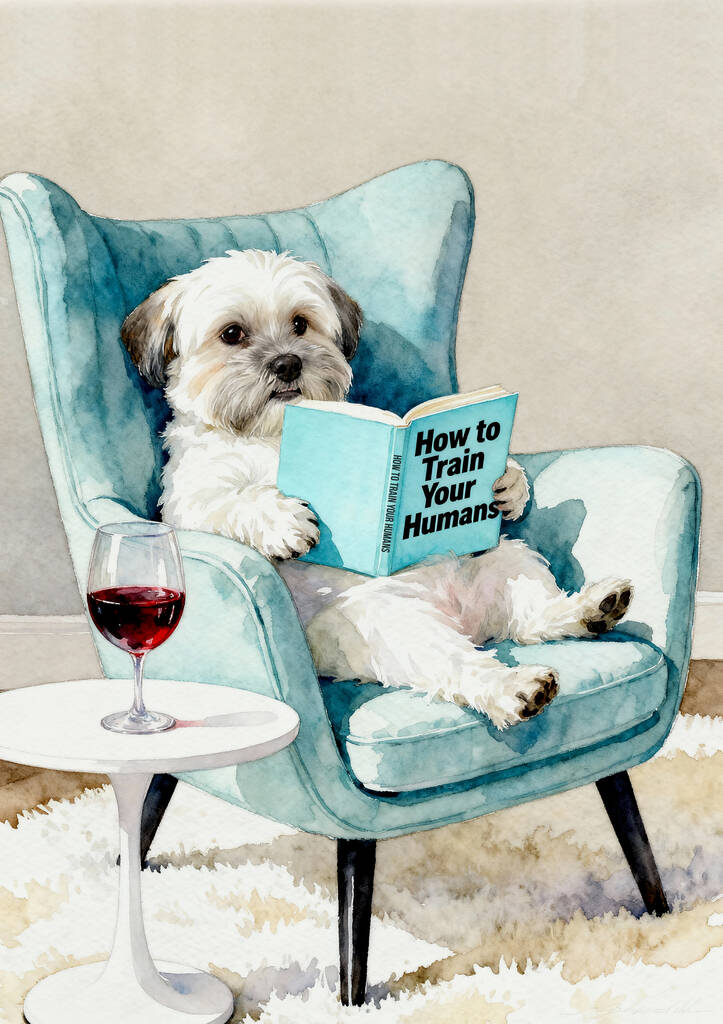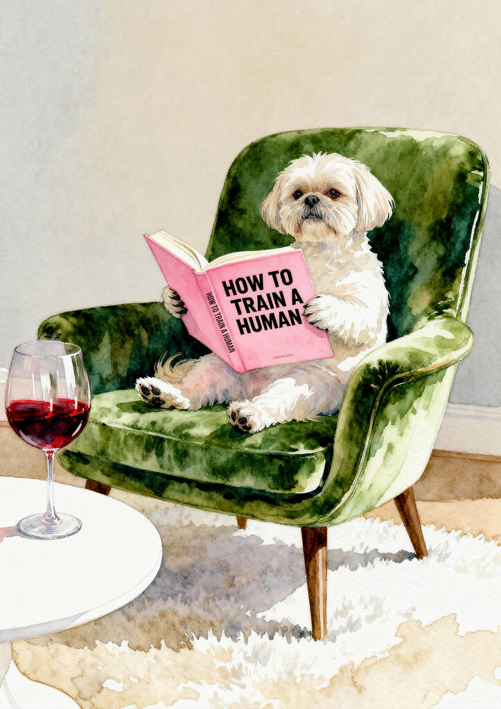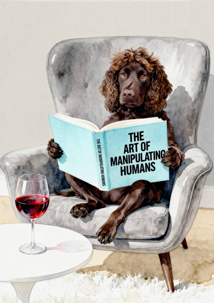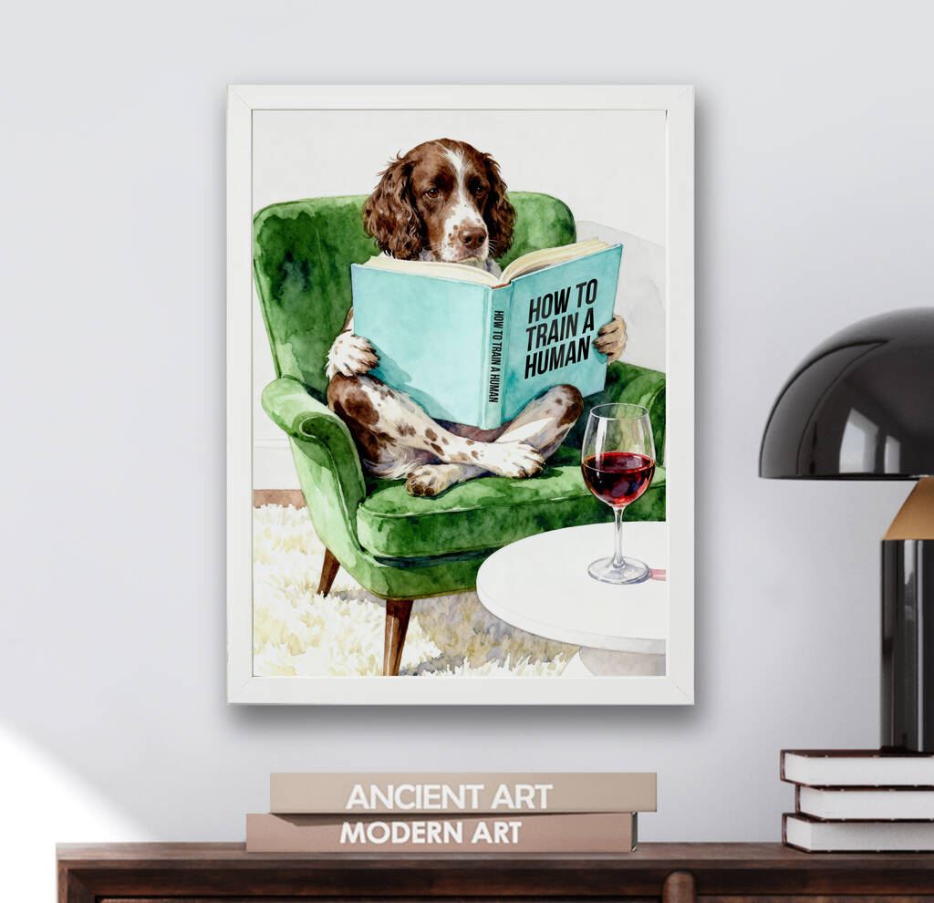 'Dog Reading Book' can be customised to your own best friend. Choose breed of dog, colours and even book title if you desire.