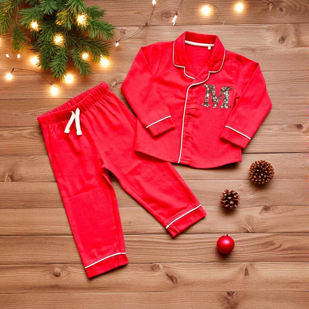 Liberty Of London Christmas Children's Personalised Classic Pyjamas Red