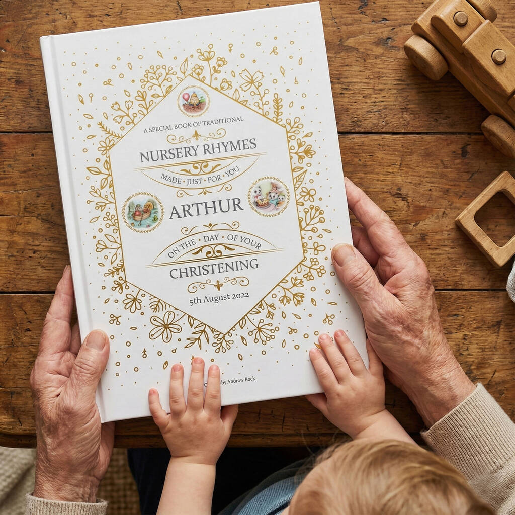 Filled with much-loved nursery rhymes and charming hand-drawn illustrations, each book is lovingly handmade to order, creating a timeless reminder of their christening day and the love that surrounds them.