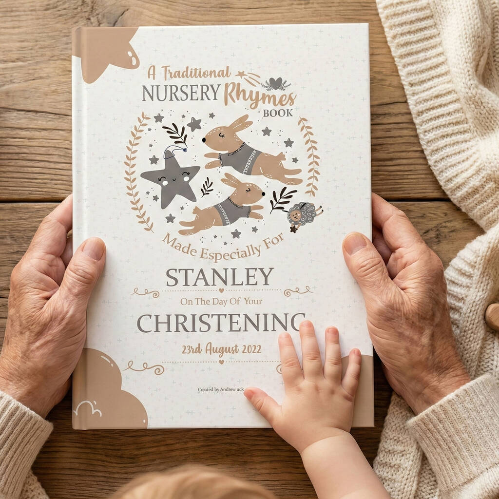 A Stunning Christening Keepsake Gift Book of Classic Nursery Rhymes Personalised for Baby. Customised with the Child's Name, Christening Date and Personal Message / Dedication