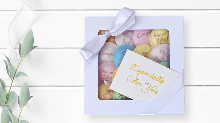 These vibrant and colourful sweets come in an assortment of colours and are personalised with names and illustrations printed directly on top.
