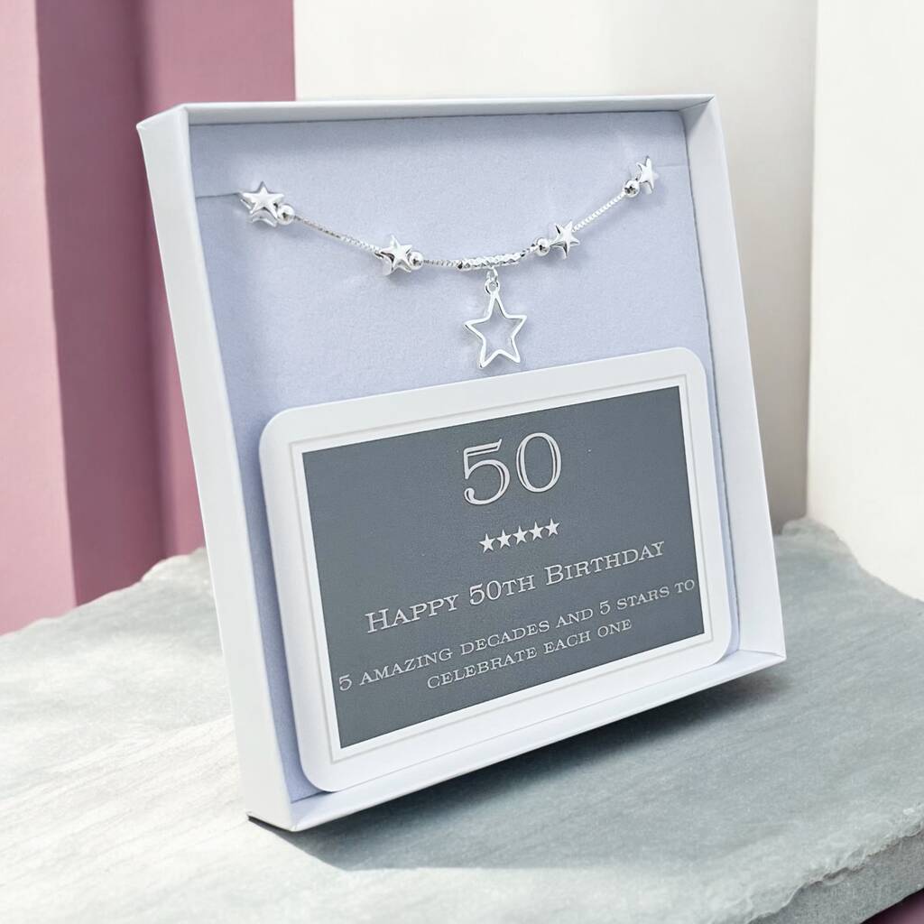 50th Birthday Solid Sterling Silver Five Star Bracelet
