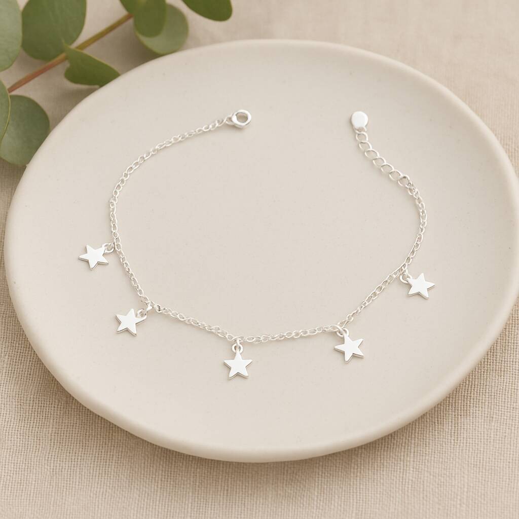 50th Birthday Sterling Silver Five Star Charm Bracelet