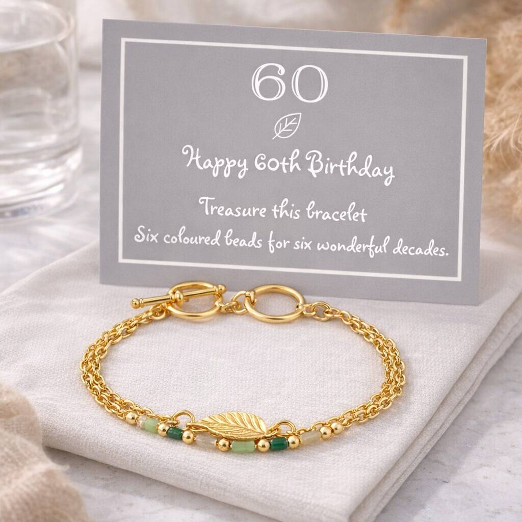 60th Birthday Gold Leaf And Six Bead Bracelet