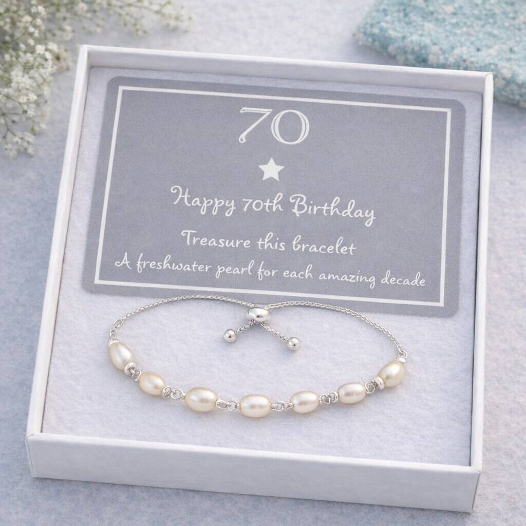 70th Birthday Sterling Silver Seven Pearl Drawstring Bracelet