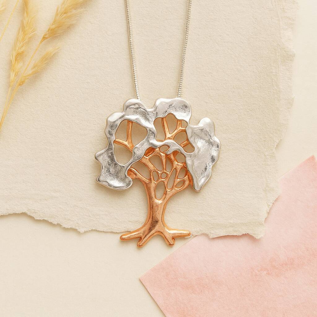 Long Mixed Metal Tree Of Life Pendant Statement Necklace
