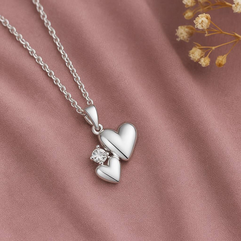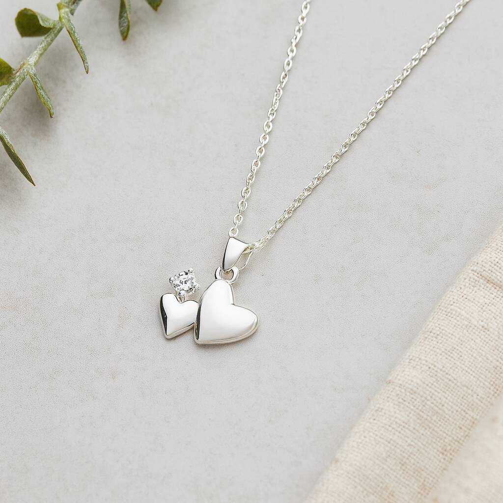 Mother And Daughter Linked Hearts Sterling Silver Necklace