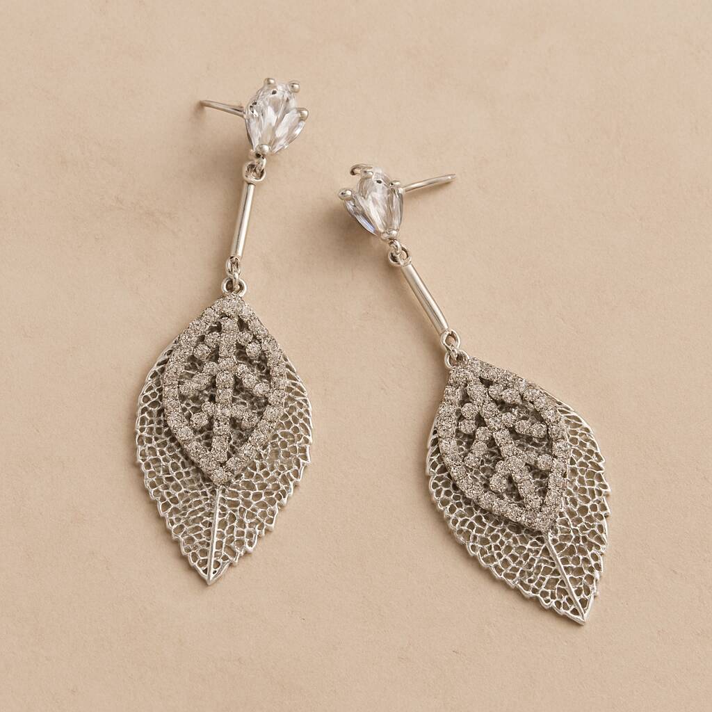 Statement Sparkle Leaf Drop Earrings