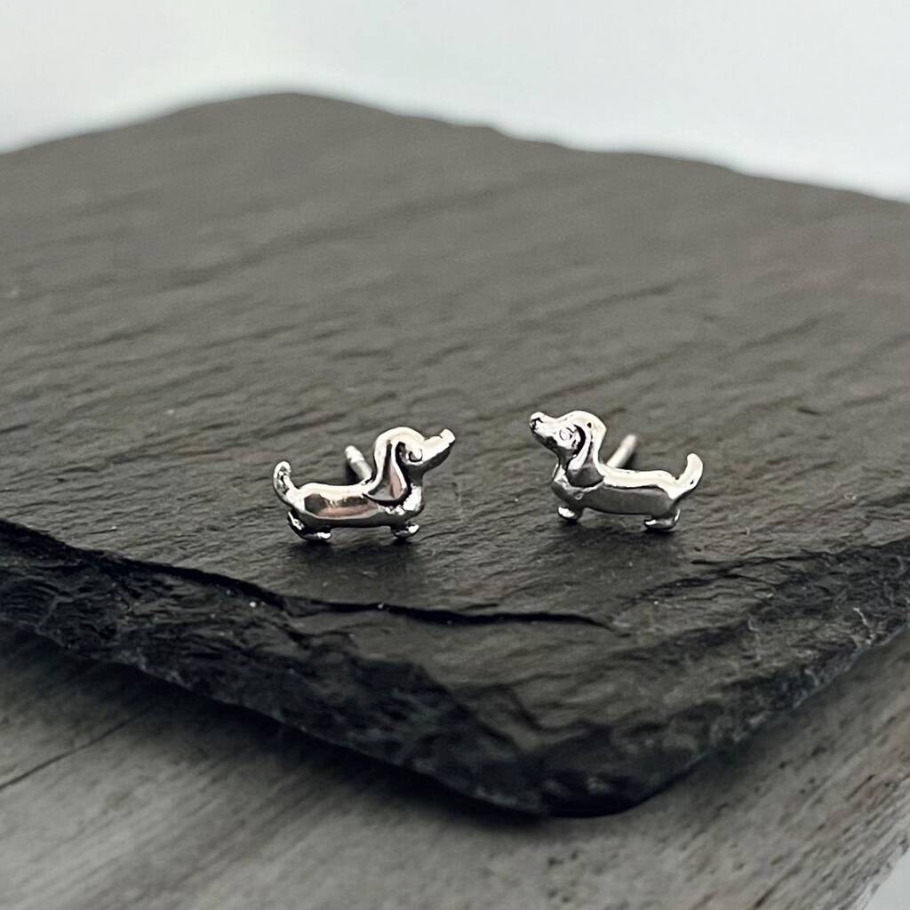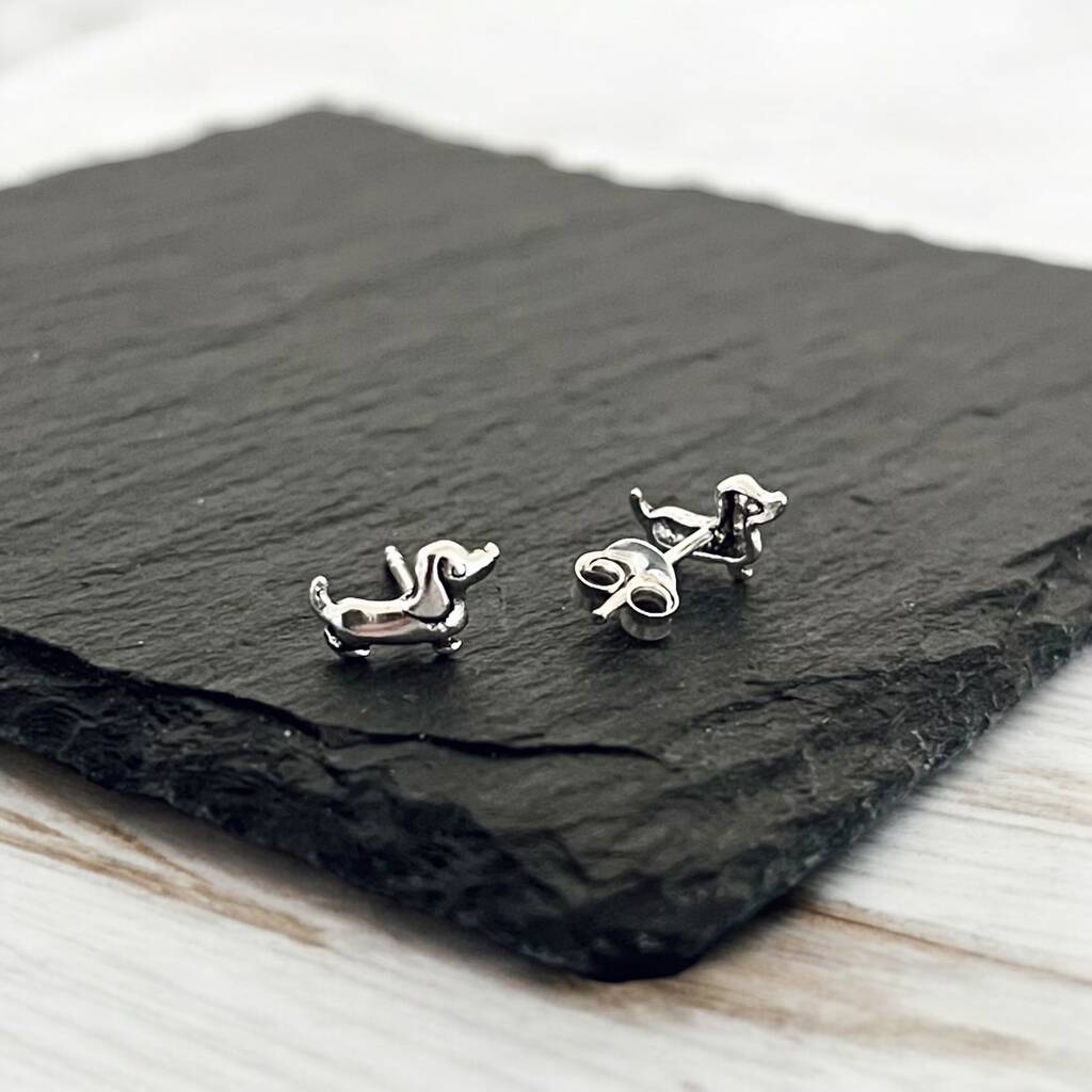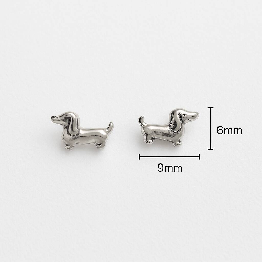 Sterling Silver Dachshund Puppy Stud Earrings