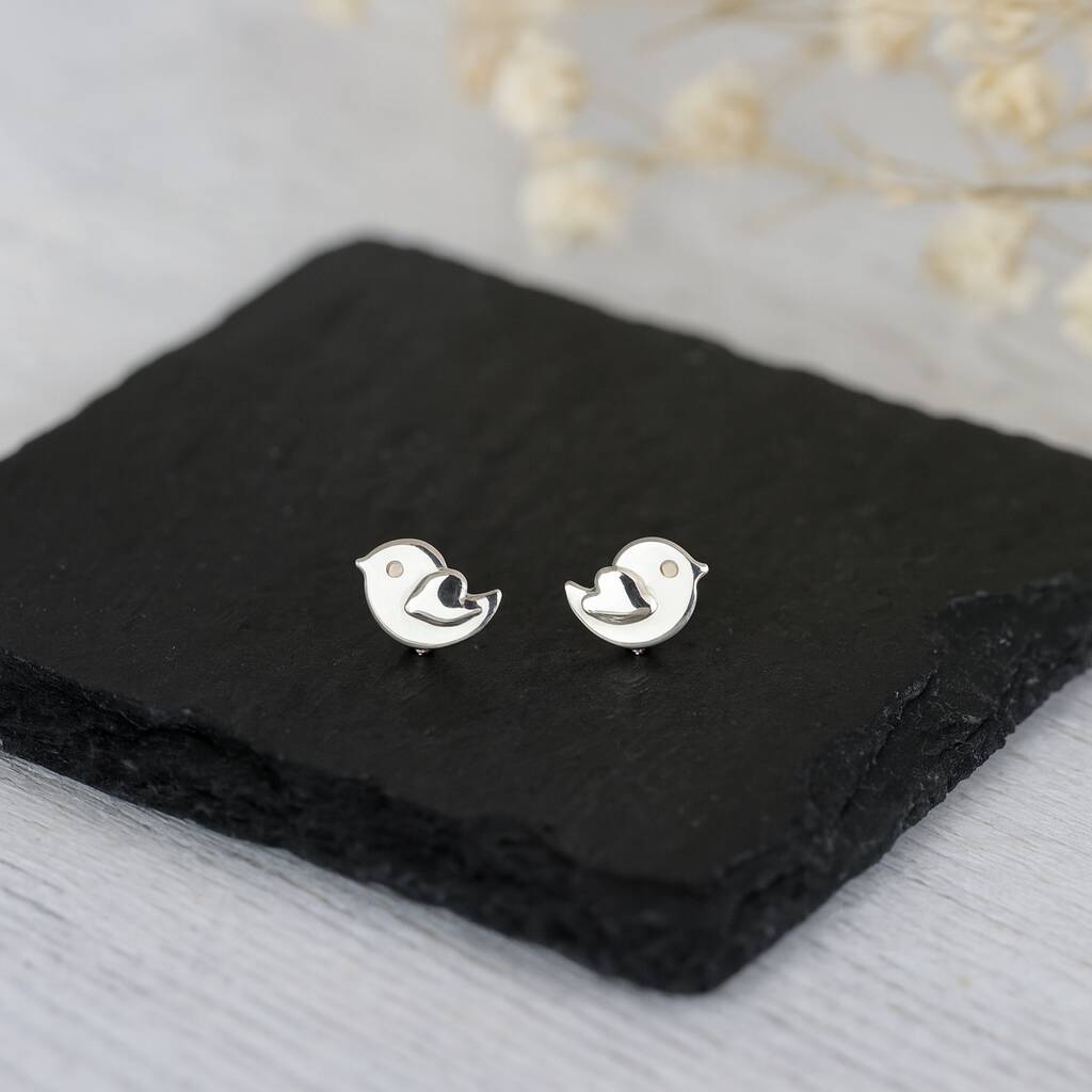 Sterling Silver Love Bird Stud Earrings