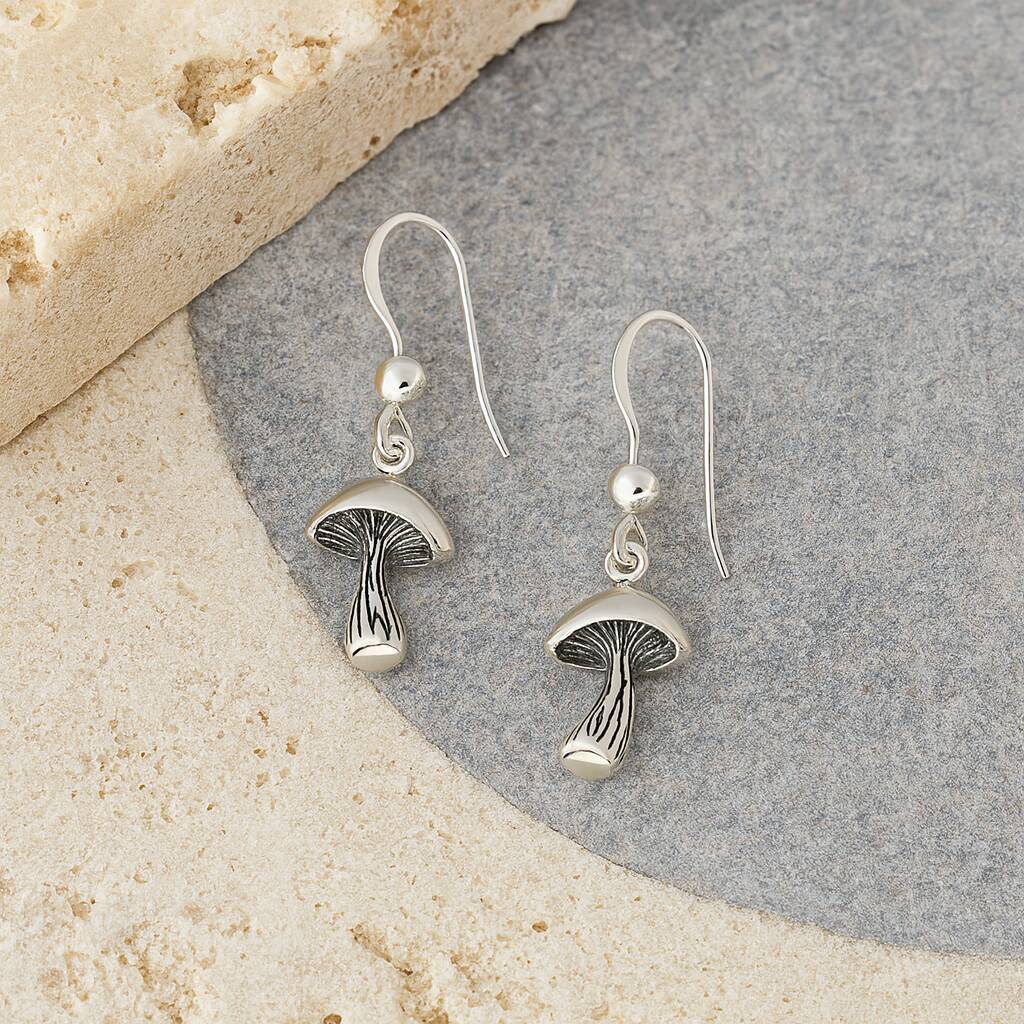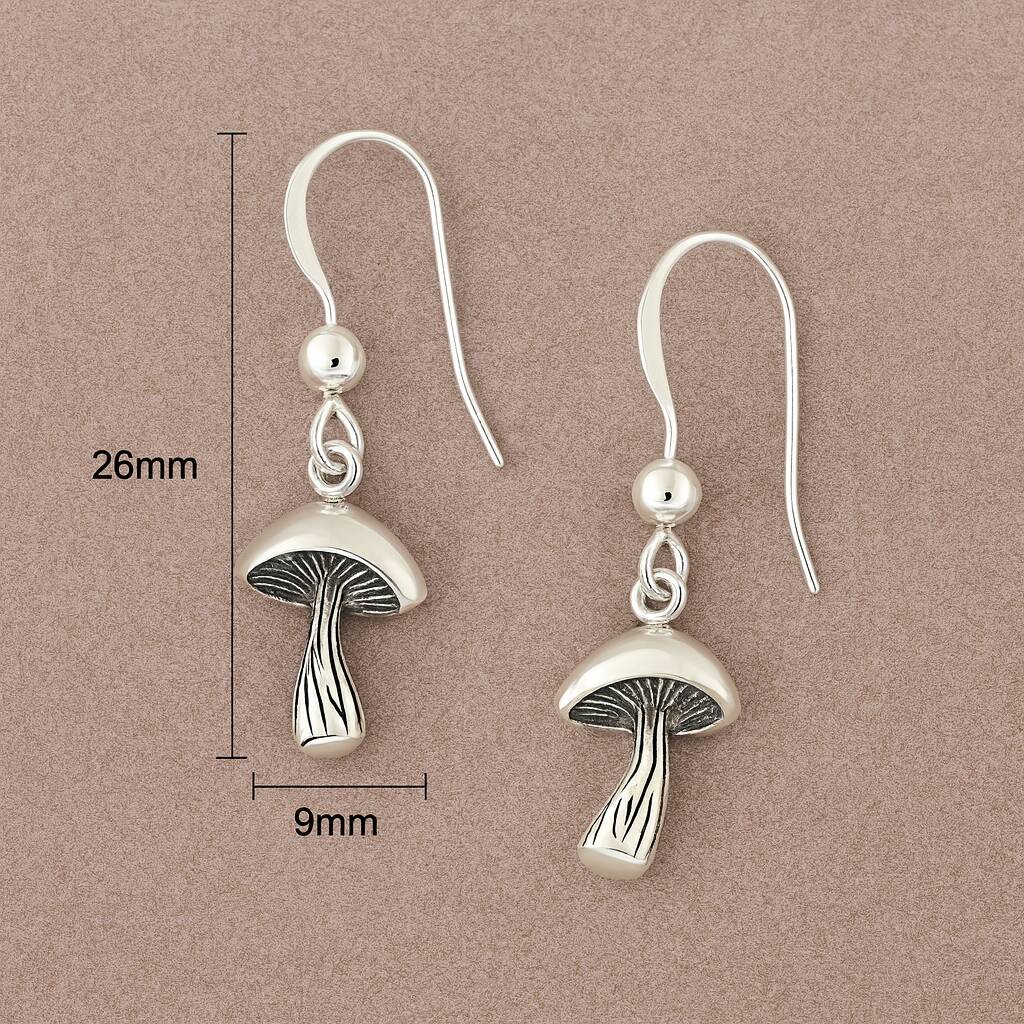 Sterling Silver Mushroom Hook Earrings