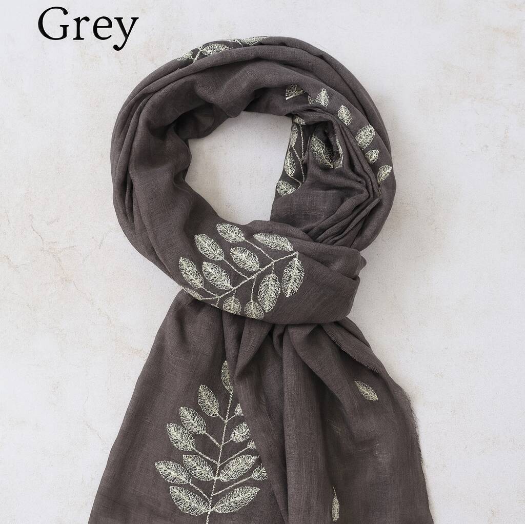 Leaf Embroidered Scarf