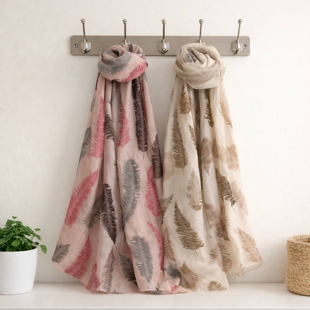 Introducing our Feather Print Scarf, a celestial addition to your seasonal wardrobe that effortlessly combines warmth and style.
