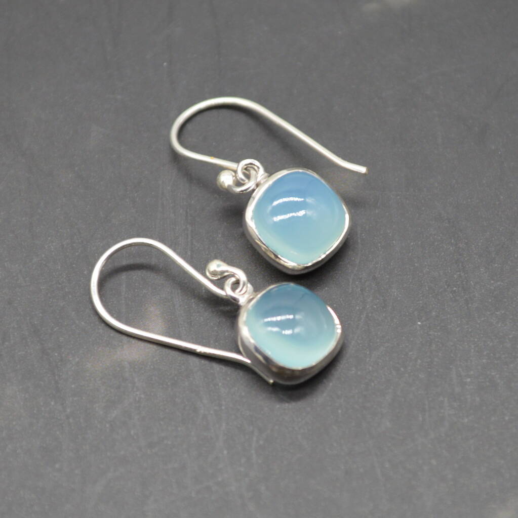 Looking for a unique and elegant gift for her? These Aqua Chalcedony Sterling Silver Earrings are a perfect choice! Handmade with love, these dangle earrings feature a stunning square-shaped blue chalcedony gemstone that catches the light beautifully. Made from high-quality sterling silver, these chalcedony earrings are a perfect match for any outfit and occasion. Whether it's for Christmas, Valentine's Day, Mother's Day, a birthday, anniversary or as bridesmaid gifts, these aqua chalcedony earrings are sure to impress. Make her feel special and appreciated with these gorgeous gemstone earrings today. Unique minimalist chalcedony jewelry.