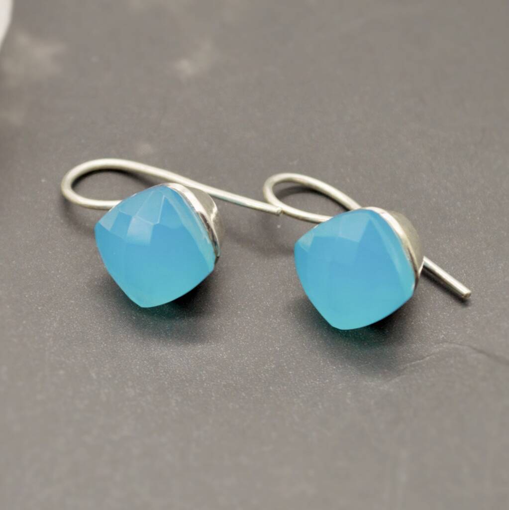 Elevate your jewelry collection with these stunning Blue Chalcedony Earrings in 925 Sterling Silver. These square gemstone earrings are a true statement piece, perfect for adding a unique touch to any outfit. Whether you're looking for a gift for birthday, anniversary, Mother's Day, Valentine, Christmas, or a special present for a loved one, these handmade vintage-inspired cute blue dangle drop earrings are versatile and timeless. These best selling items make great gifts for her. Treat yourself or someone special to the beauty of Blue Chalcedony jewelry with these elegant sterling silver earrings to stand out in the crowd.