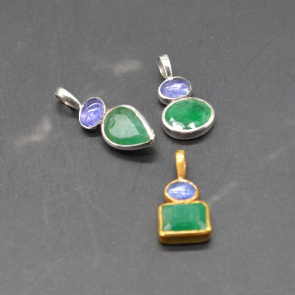 Emerald Tanzanite Pendant: May December Birthstone