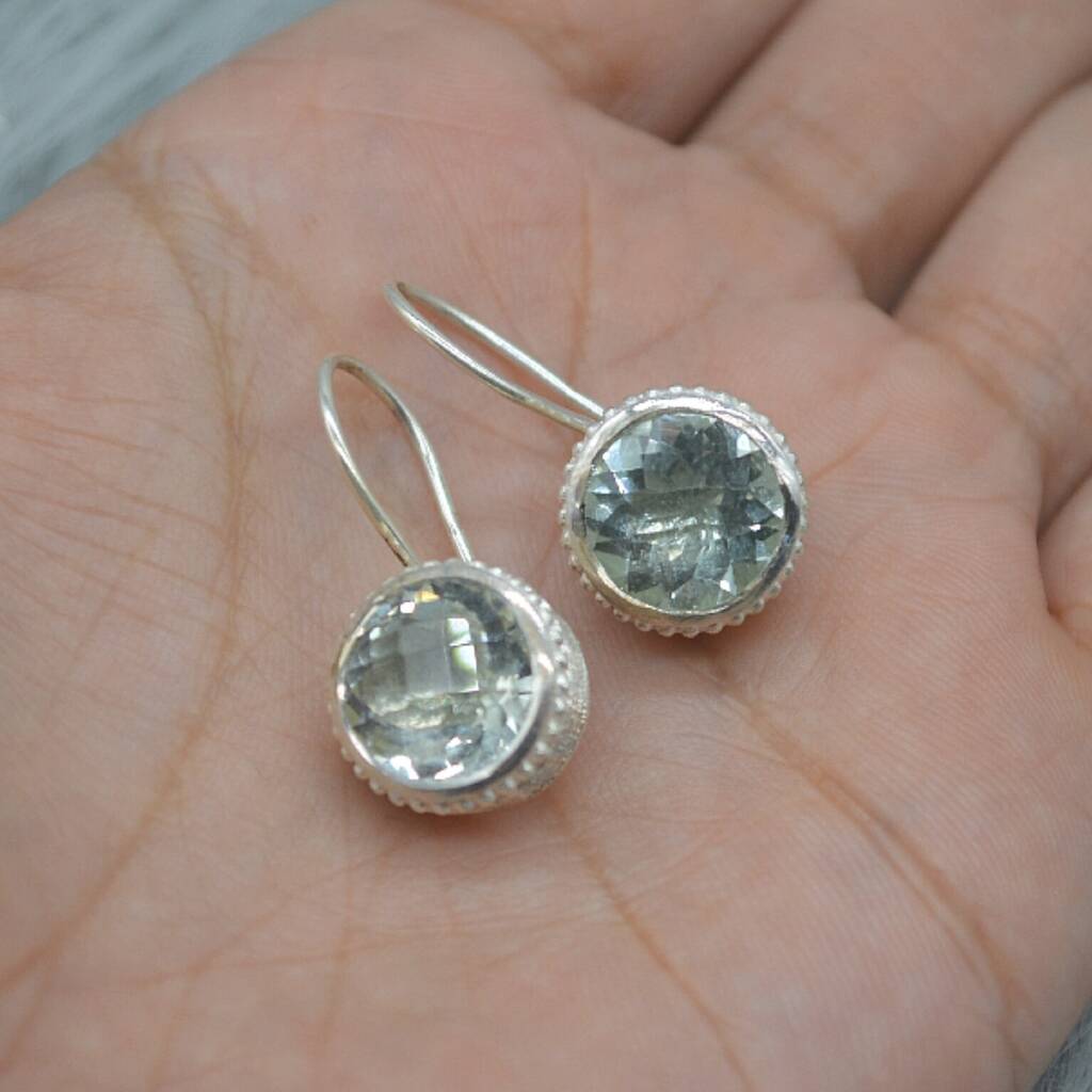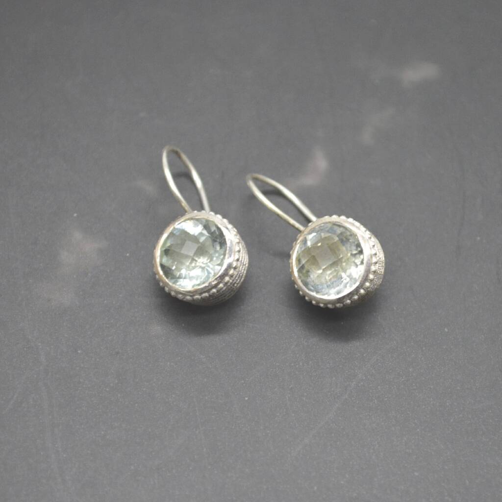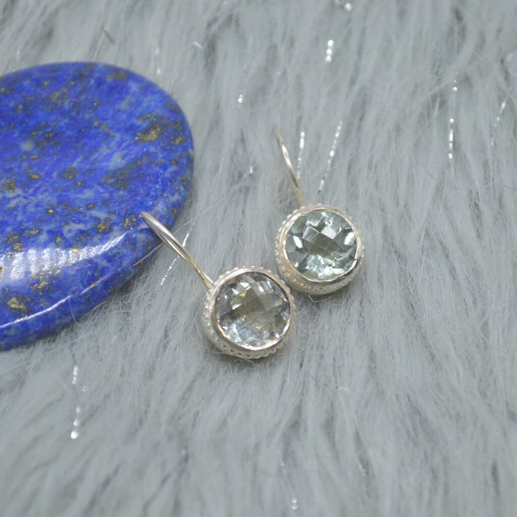 Green Amethyst Silver Earrings: February Birthstone