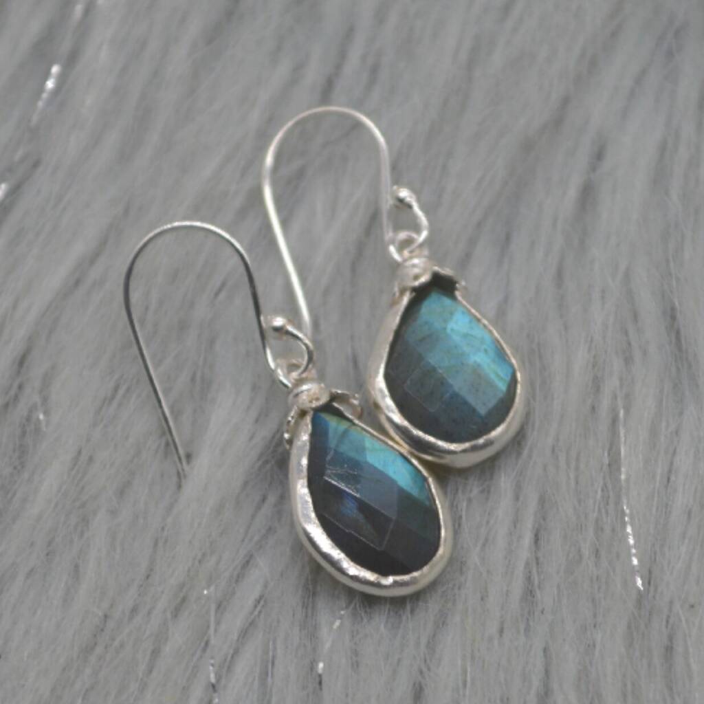 Discover the captivating allure of our Labradorite Dangle Earrings - a mesmerizing addition to your jewelry collection. Handmade with love, these unique gemstone earrings showcase the enchanting beauty of blue labradorite, delicately set in sterling silver or gold plated. Elevate your style with these exquisite gemstone earrings, perfect for any occasion - be it Christmas, anniversaries, Mother's Day, Valentine's, or birthdays. Unleash your inner radiance and charm with these stunning boho drop gold earrings. These labradorite earrings blend elegance and mystique, making them a standout gift. Shop now and delight her with a truly special gift that will leave her spellbound!