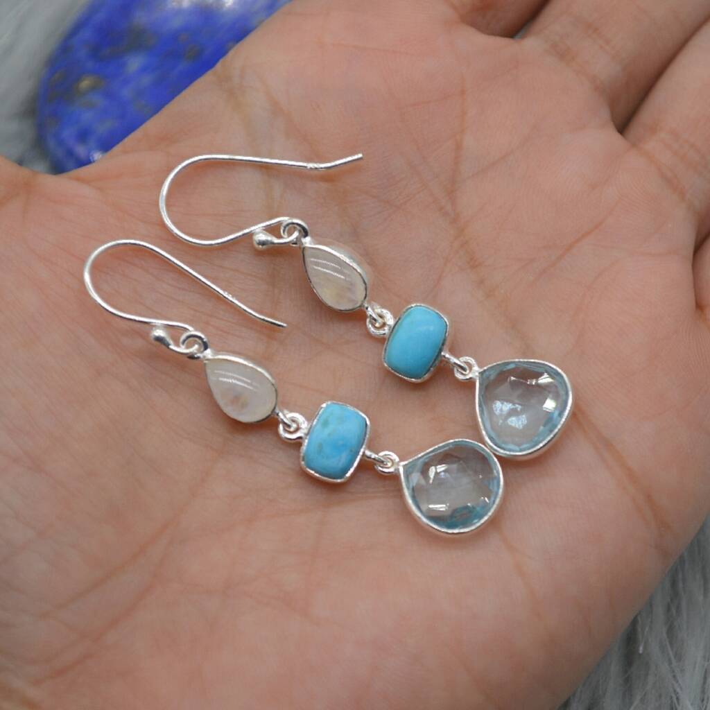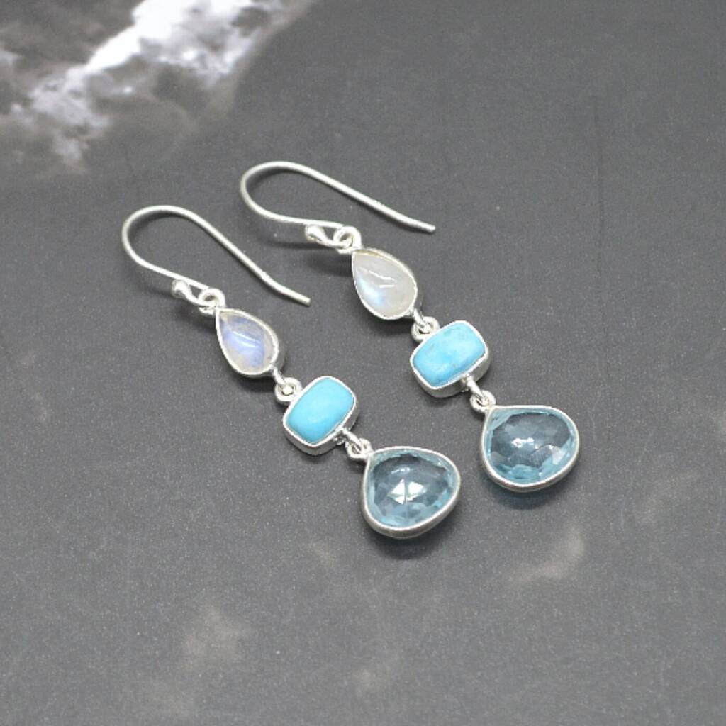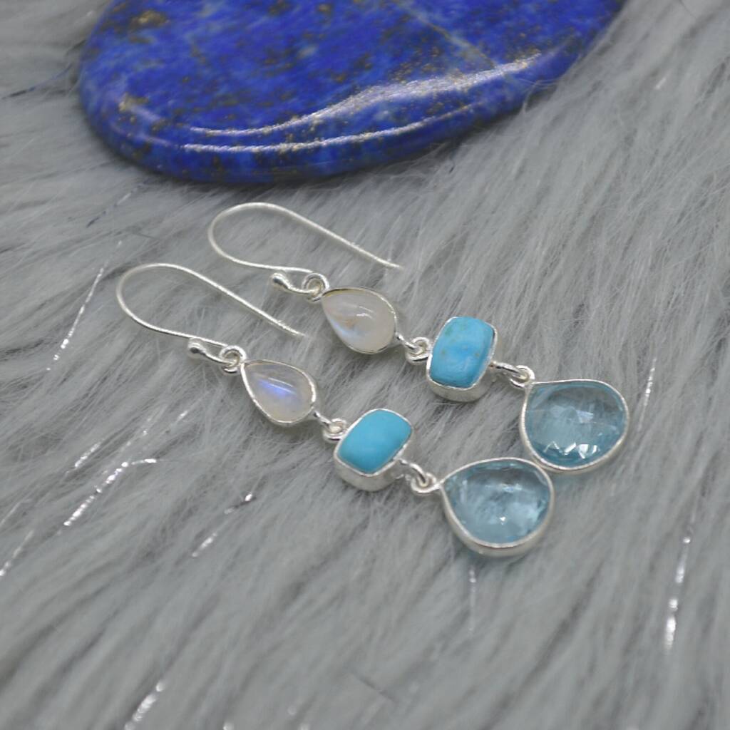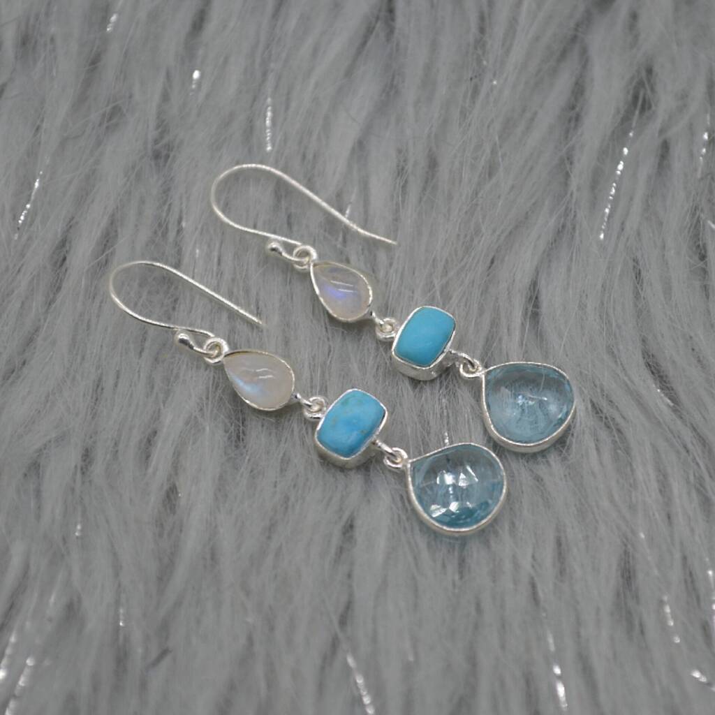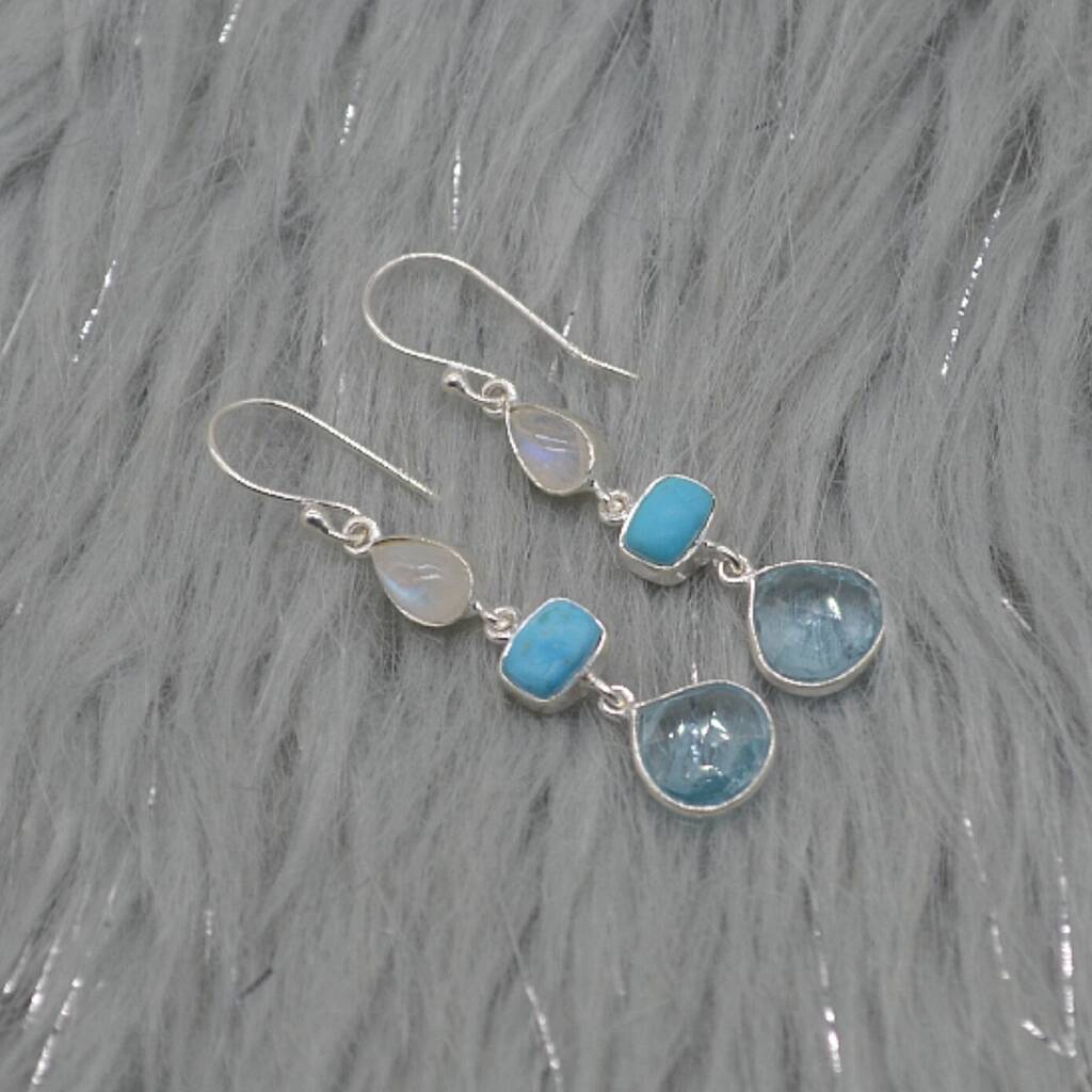 Moonstone Turquoise Blue Topaz Earrings