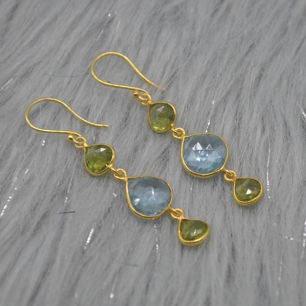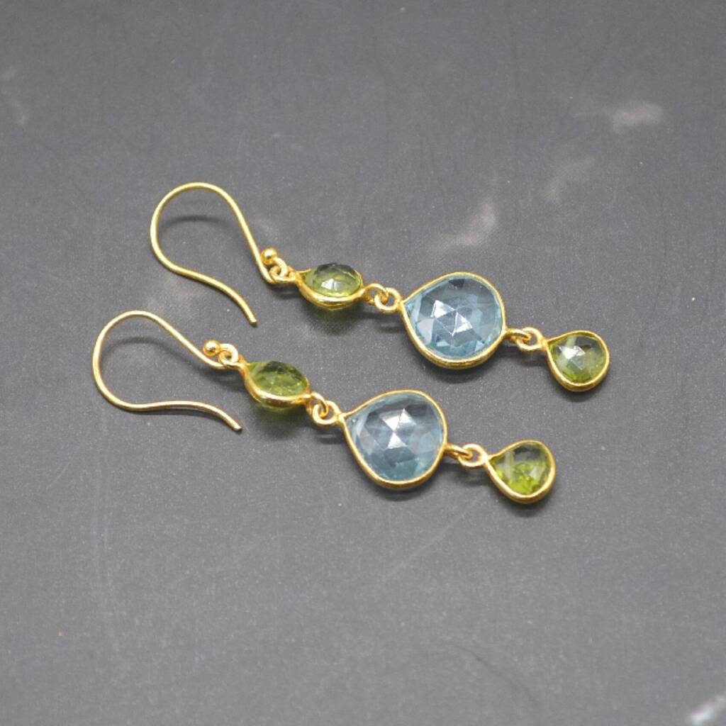 Peridot Blue Topaz Gold Plated 925 Silver Earrings