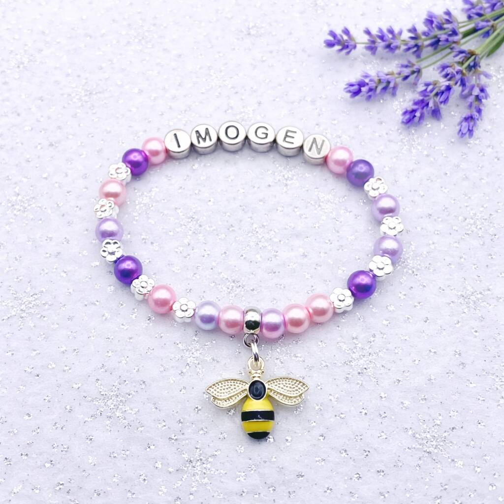 Personalised Bumble Bee Charm Bracelet Gift For Her