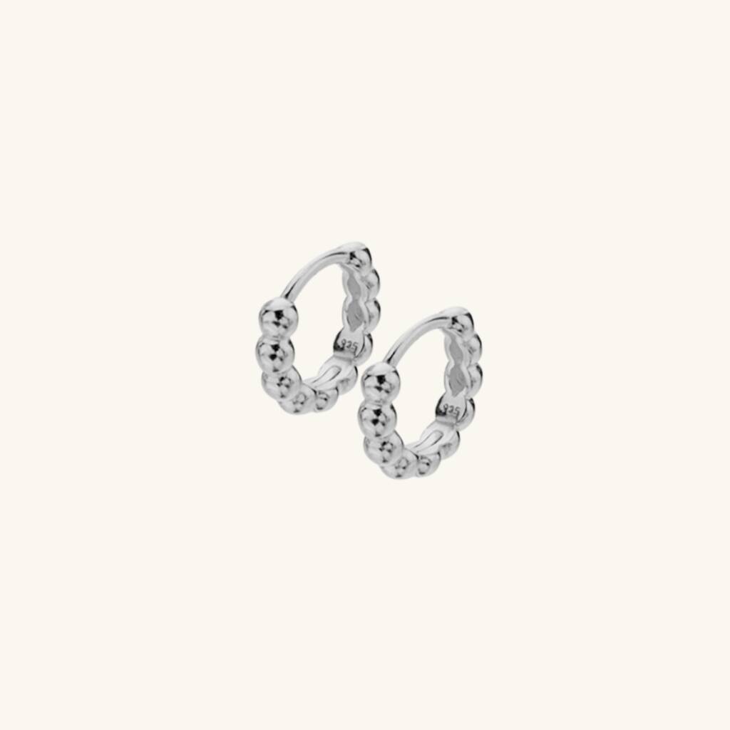 Beaded Huggie Hoop Earrings Silver