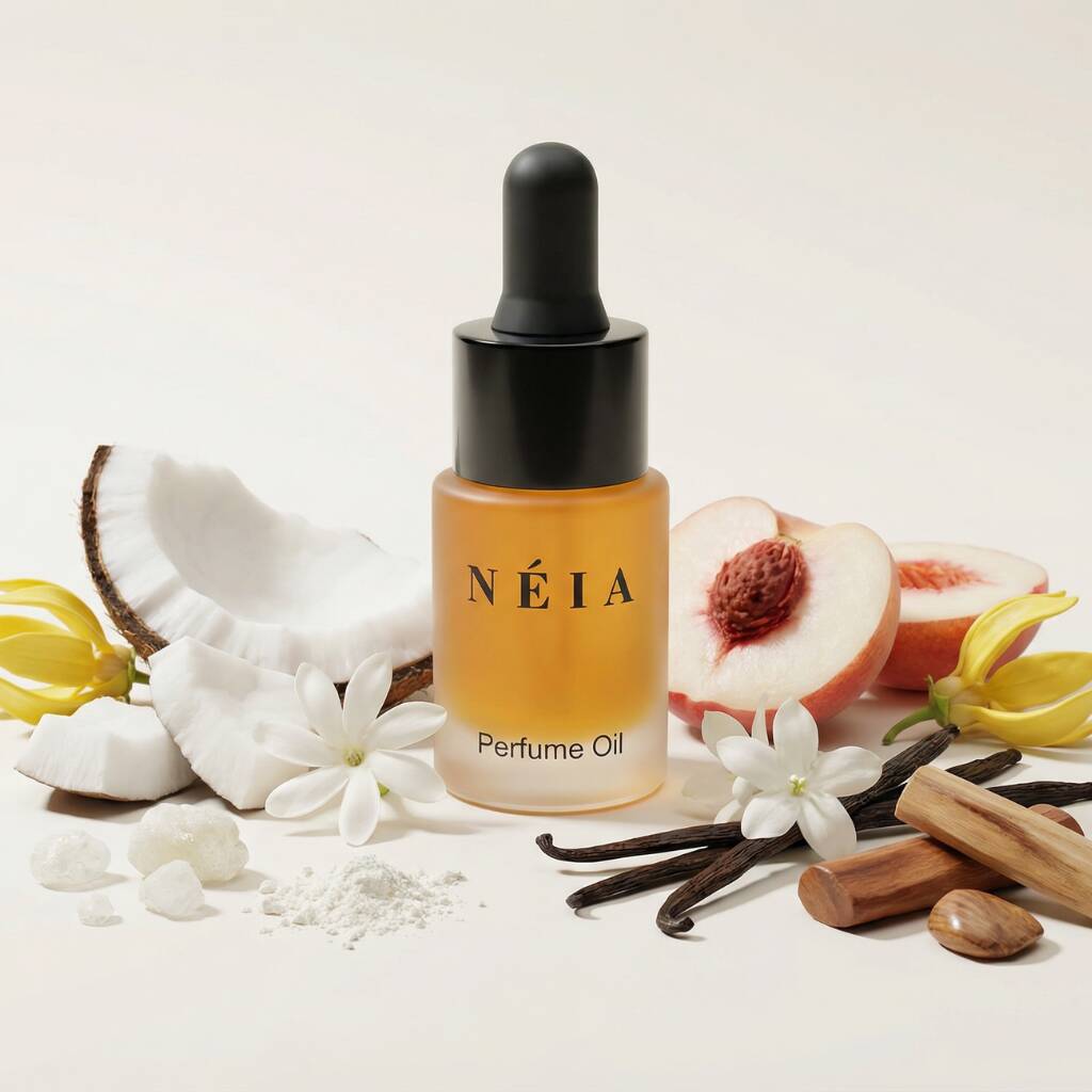 A soft tropical perfume oil blending coconut, white peach and jasmine with warm vanilla and musk for a smooth, long-lasting fragrance.Silk Musk by NÉIA is a soft and elegant perfume oil that blends creamy tropical notes with delicate florals and warm musk. Opening with coconut and white peach, the fragrance unfolds into a floral heart of tiare flower, ylang-ylang and jasmine before settling into a comforting base of Madagascar vanilla, white musk and woody notes.