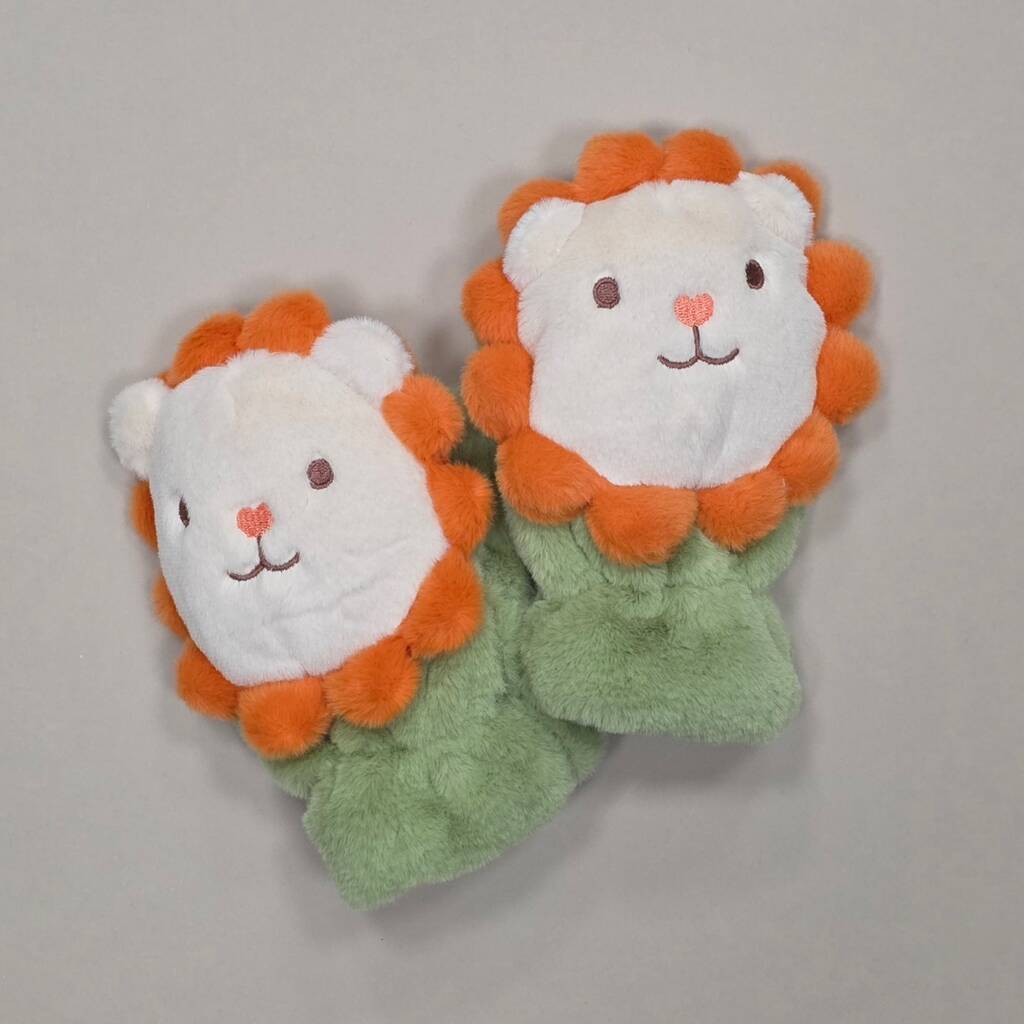Children's Fluffy Cute Lion Mittens In Fern Green
