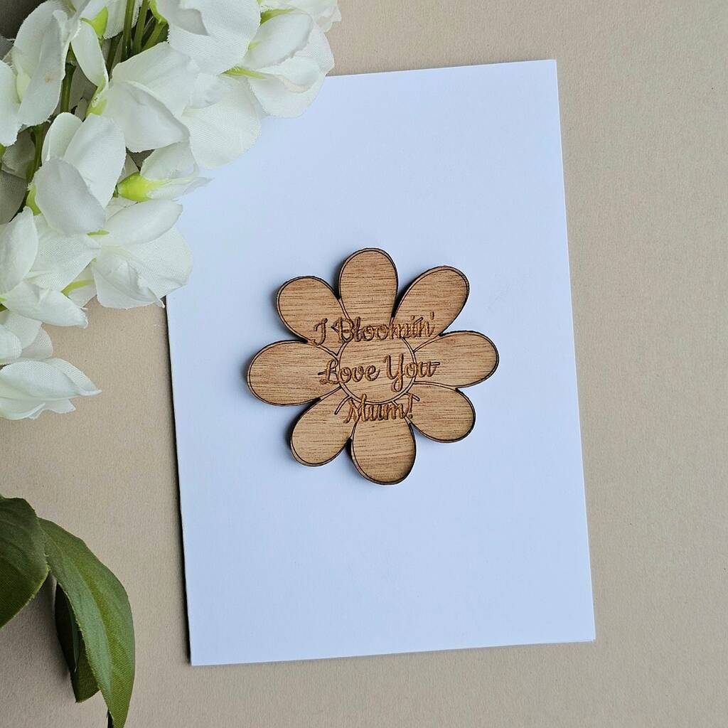 'I Bloomin' Love You Mum!' Wooden Flower Token And Card