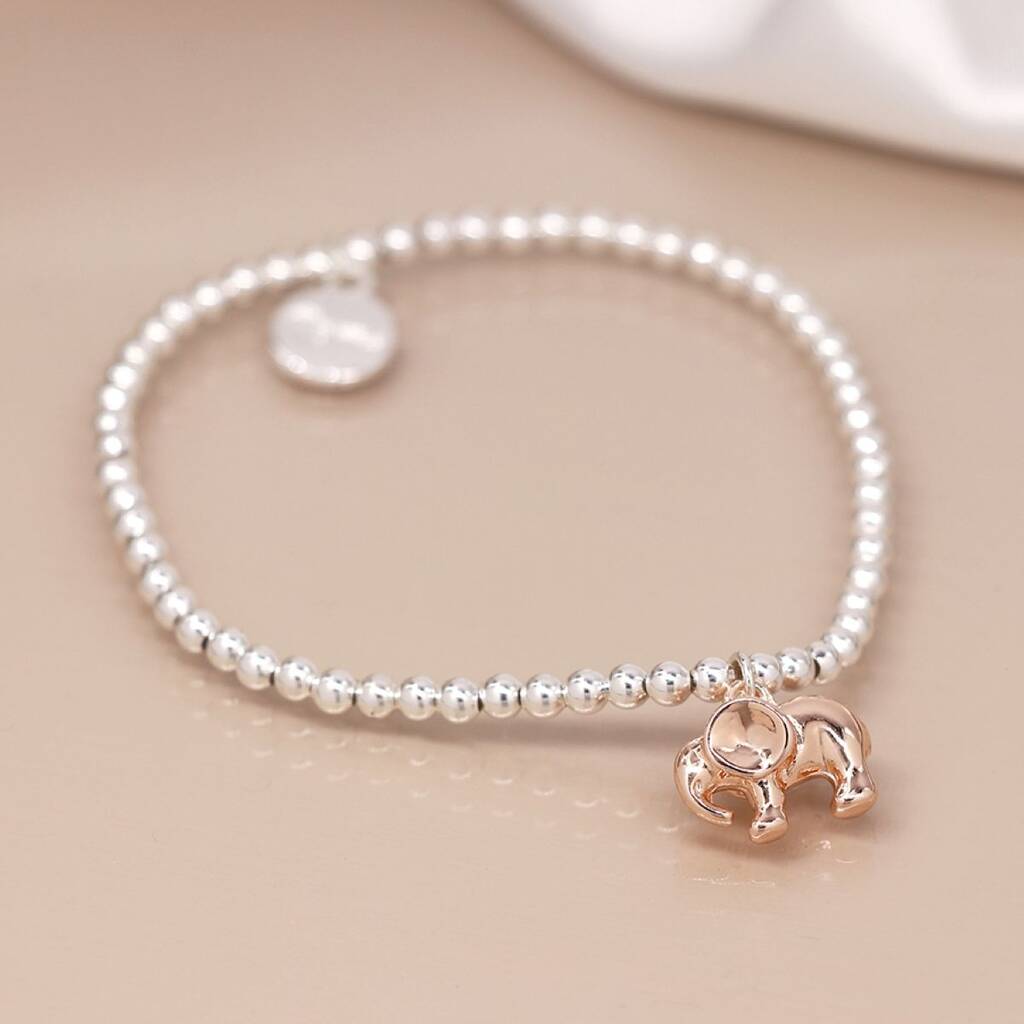 Rose Gold Plated Elephant On Ball Bead Bracelet