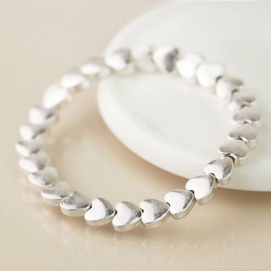 Silver Plated Worn Small Hearts Stretch Bracelet
