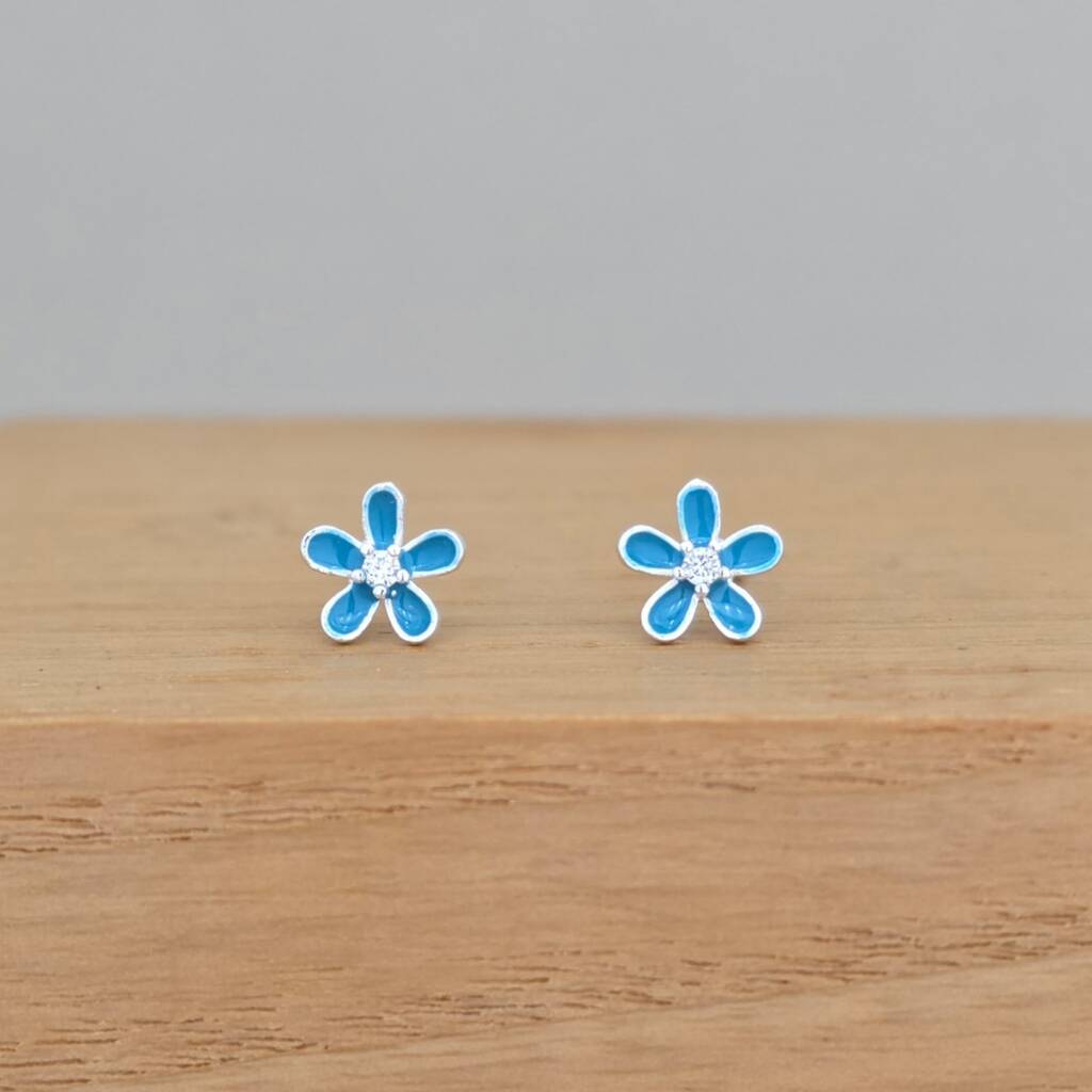 Sterling Silver Enamel Flower Stud Earrings