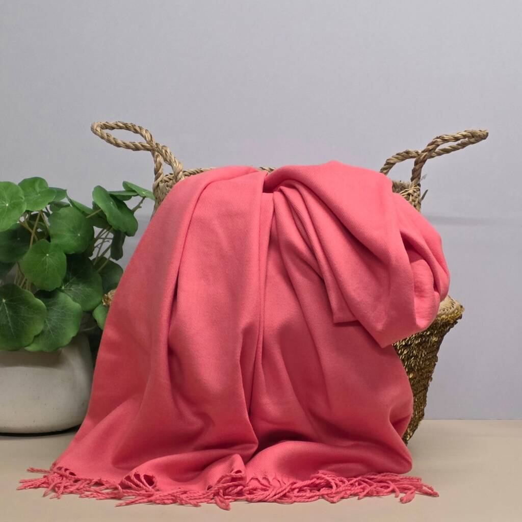 Super Soft Plain Pashmina Style Scarf In Coral Pink