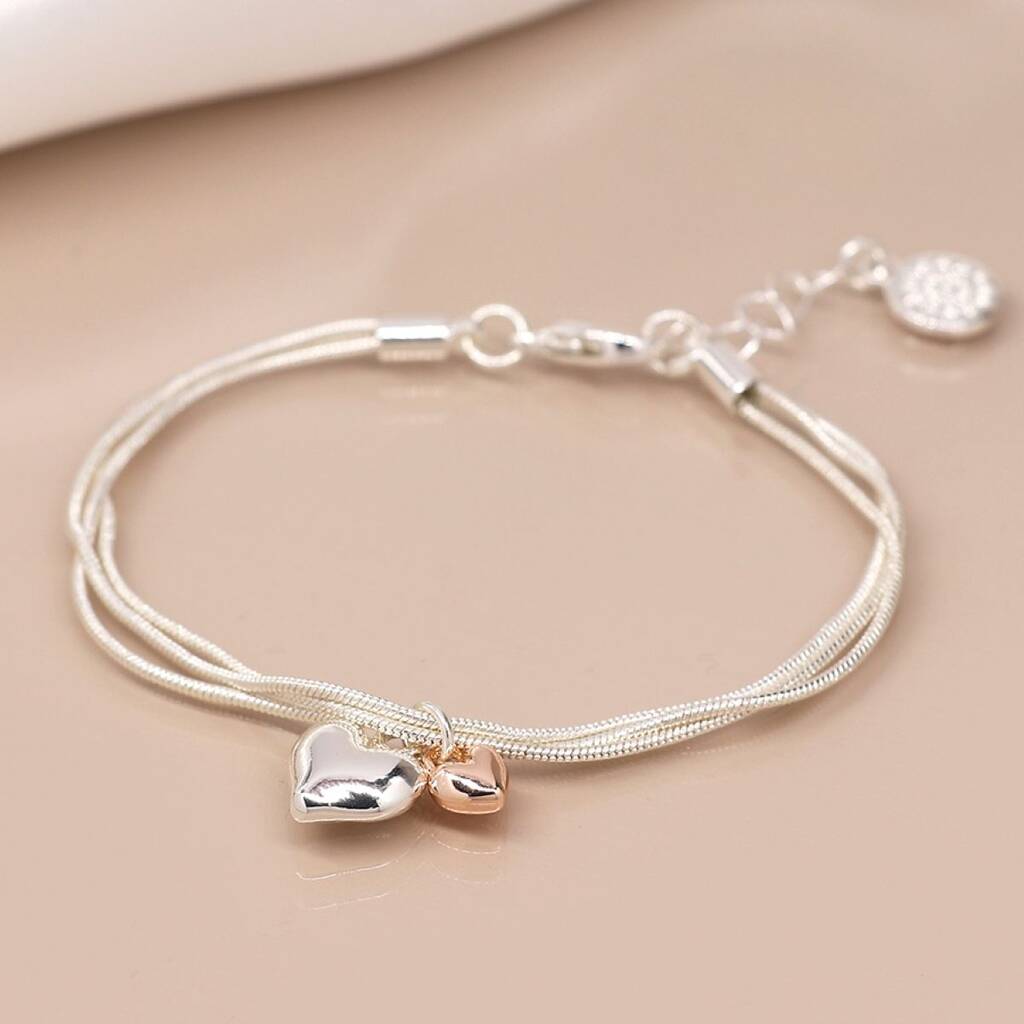 Triple Chain Bracelet With Hearts