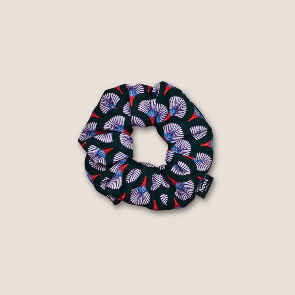 Matsuri Green Fan Print Silky Recycled Scrunchie