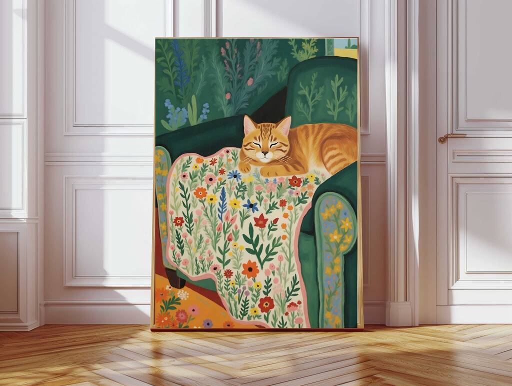 Cozy Ginger Cat Painting Art Print