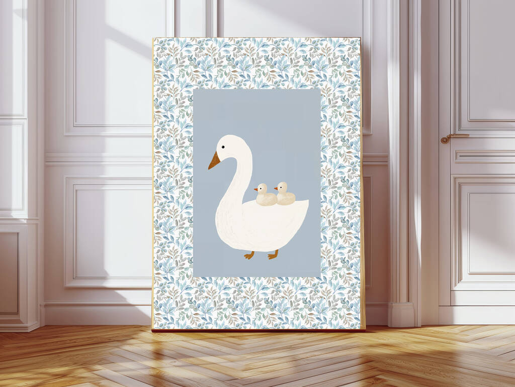 Floral Blue Goose Nursery Art Print
