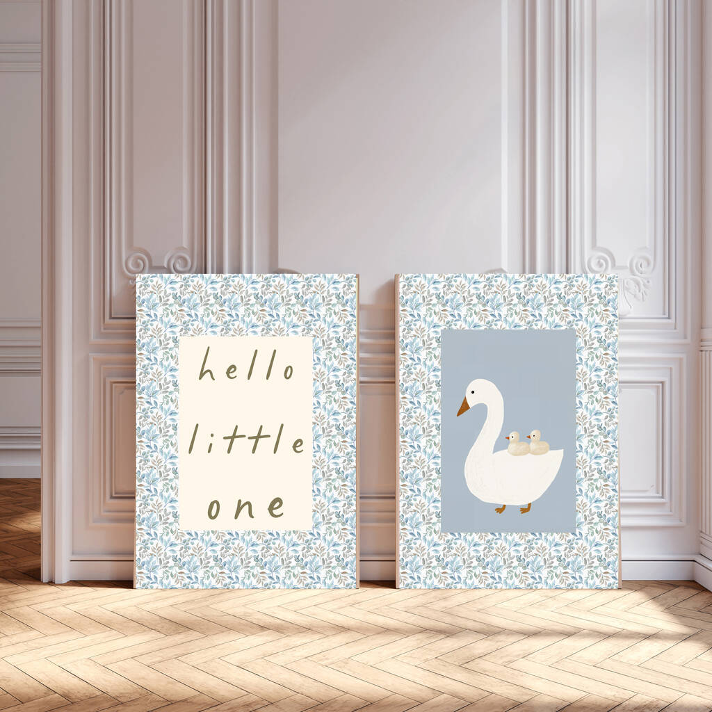 'Hello Little One' Set Of Two Nursery Blue Art Prints