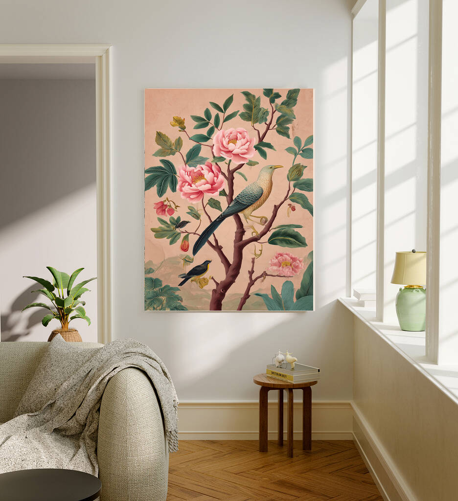 Japanese Pink Chinoiserie Bird Art Print