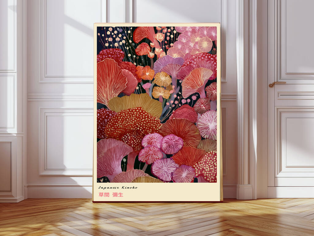 Japanese Pink Floral Mushrooms Art Print