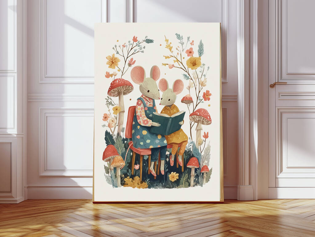 Mummy Mouse Reading Book Nursery Art Print