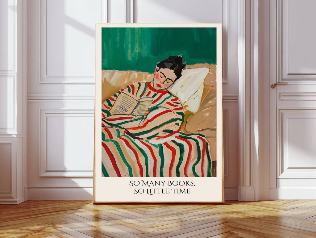 So Many Books, So Little Time, Female Reading Art Print