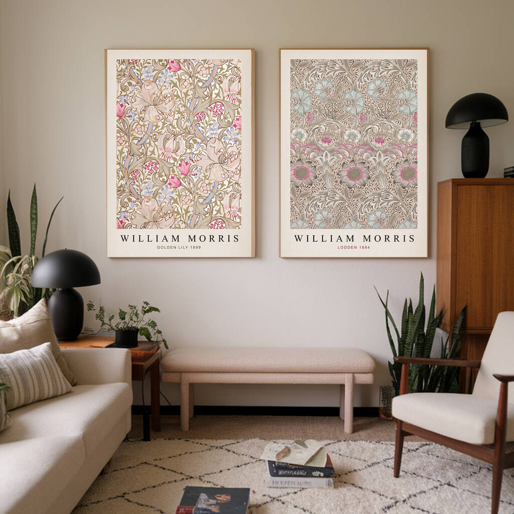 William Morris Cream Floral Set Of Two Art Prints