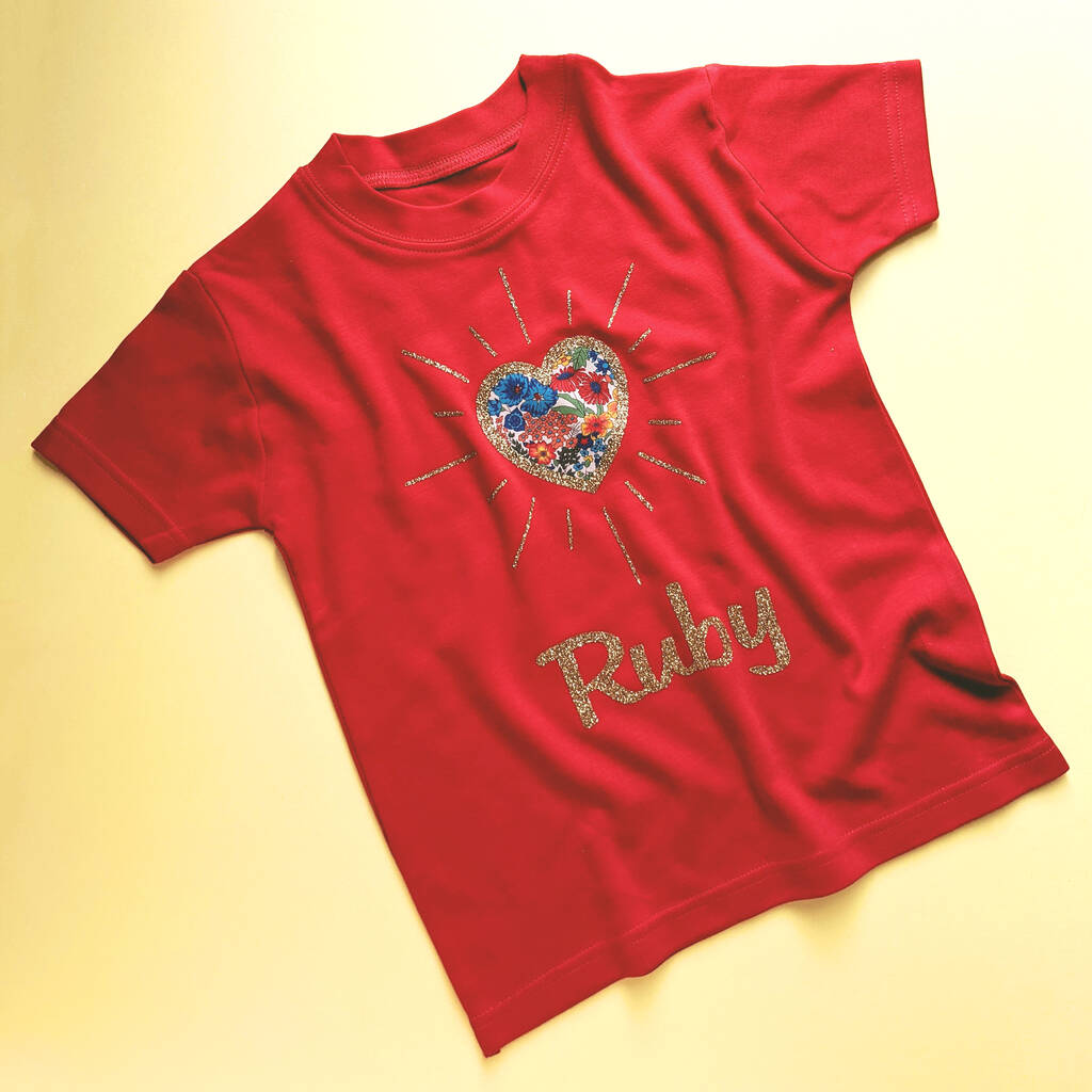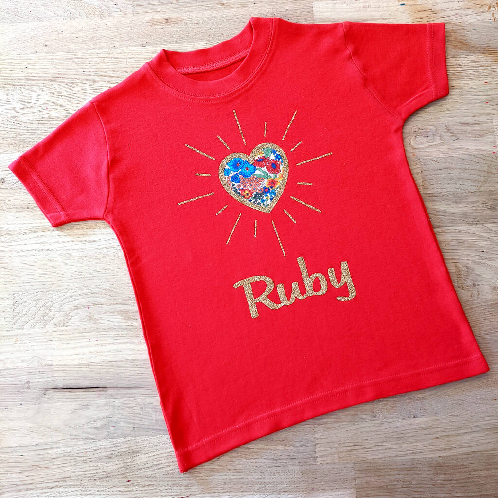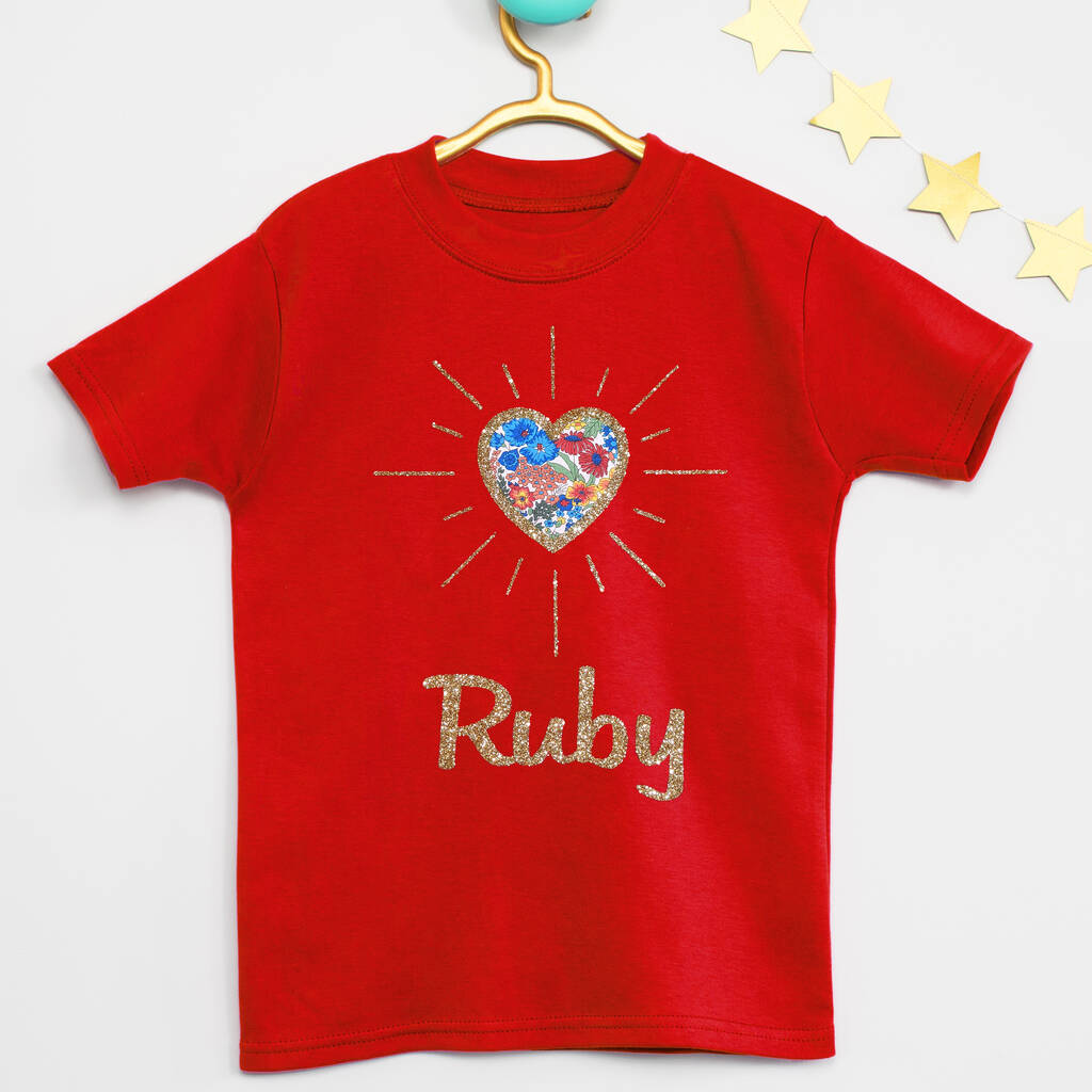 Personalised Liberty Sunburst Heart Sparkly T Shirt