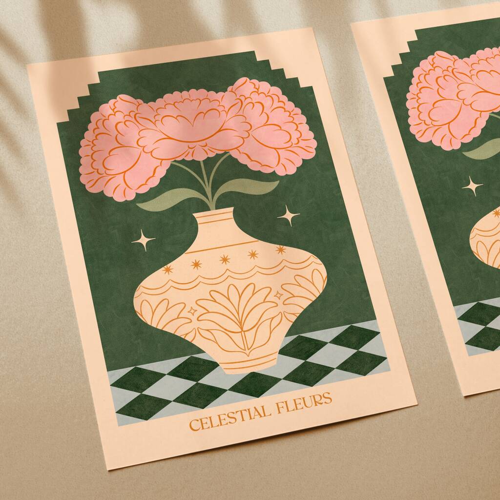 Celestial Fleurs, Floral Vase Bohemian Plant Art Print, Flower Poster
